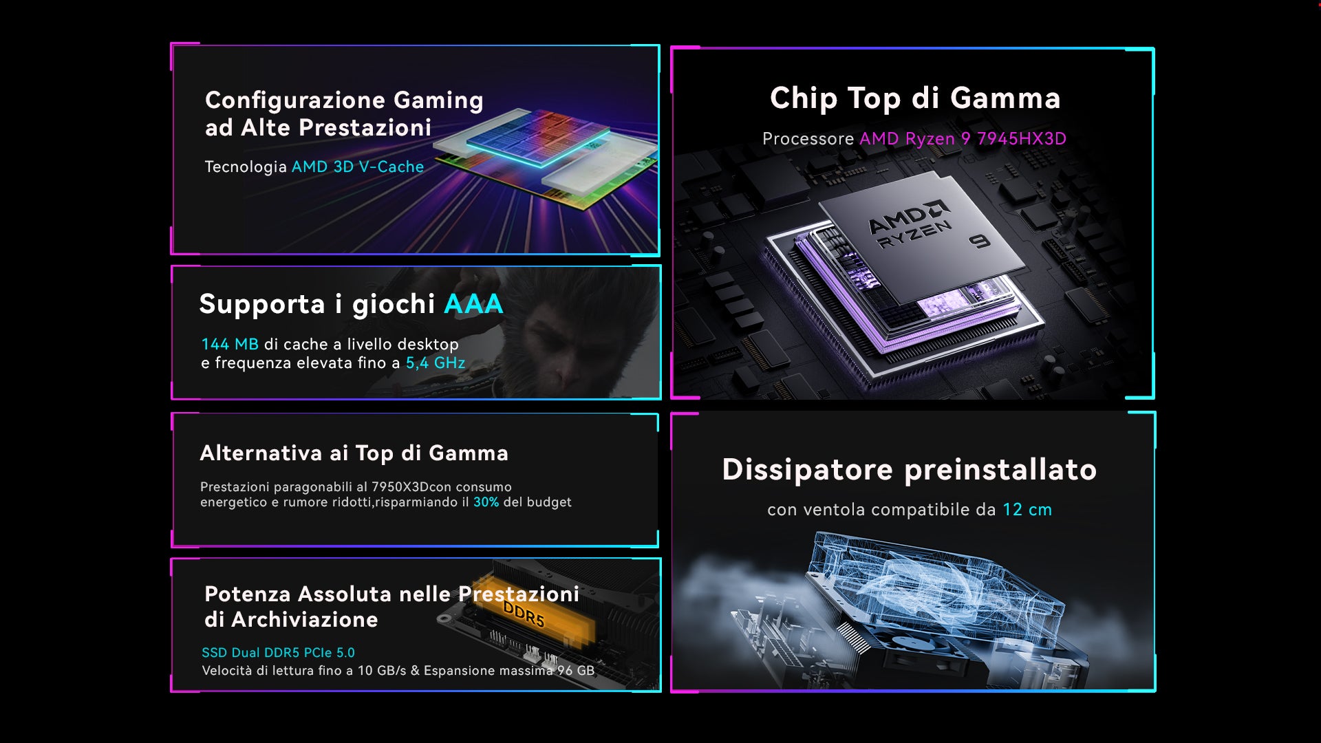 Il BD790i X3D si basa sull'architettura Zen 4. Con 16 core e 32 thread, offre capacità di multitasking eccezionali e prestazioni di calcolo straordinarie.