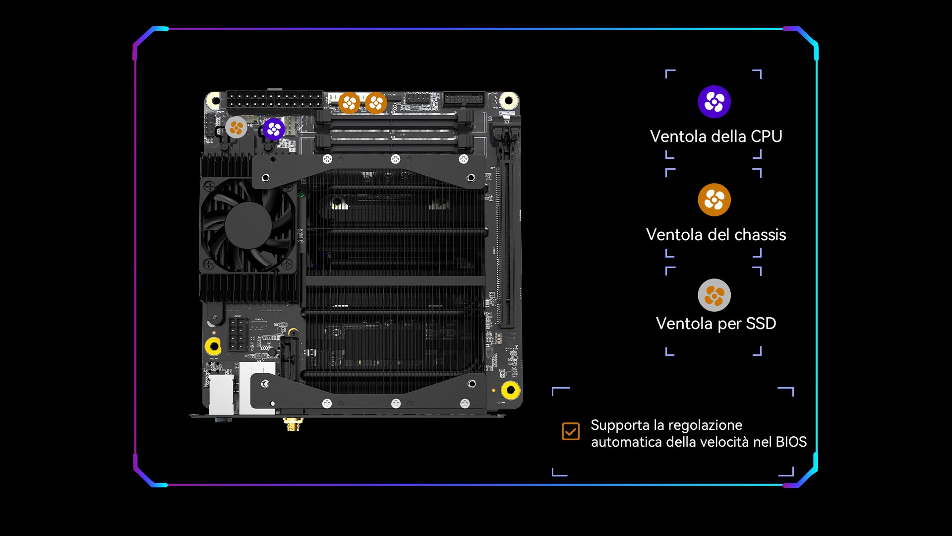 Inoltre, è dotato di un dissipatore attivo per SSD, che assicura il funzionamento a velocità massima della connessione PCIe 5.0.