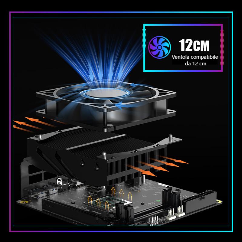 Il modulo di raffreddamento per CPU, progettato meticolosamente e abbinato a un grande dissipatore termico che copre l'80% della superficie della scheda madre, garantisce che la temperatura rimanga bassa e stabile anche sotto carichi pesanti, mantenendo prestazioni ottimali.