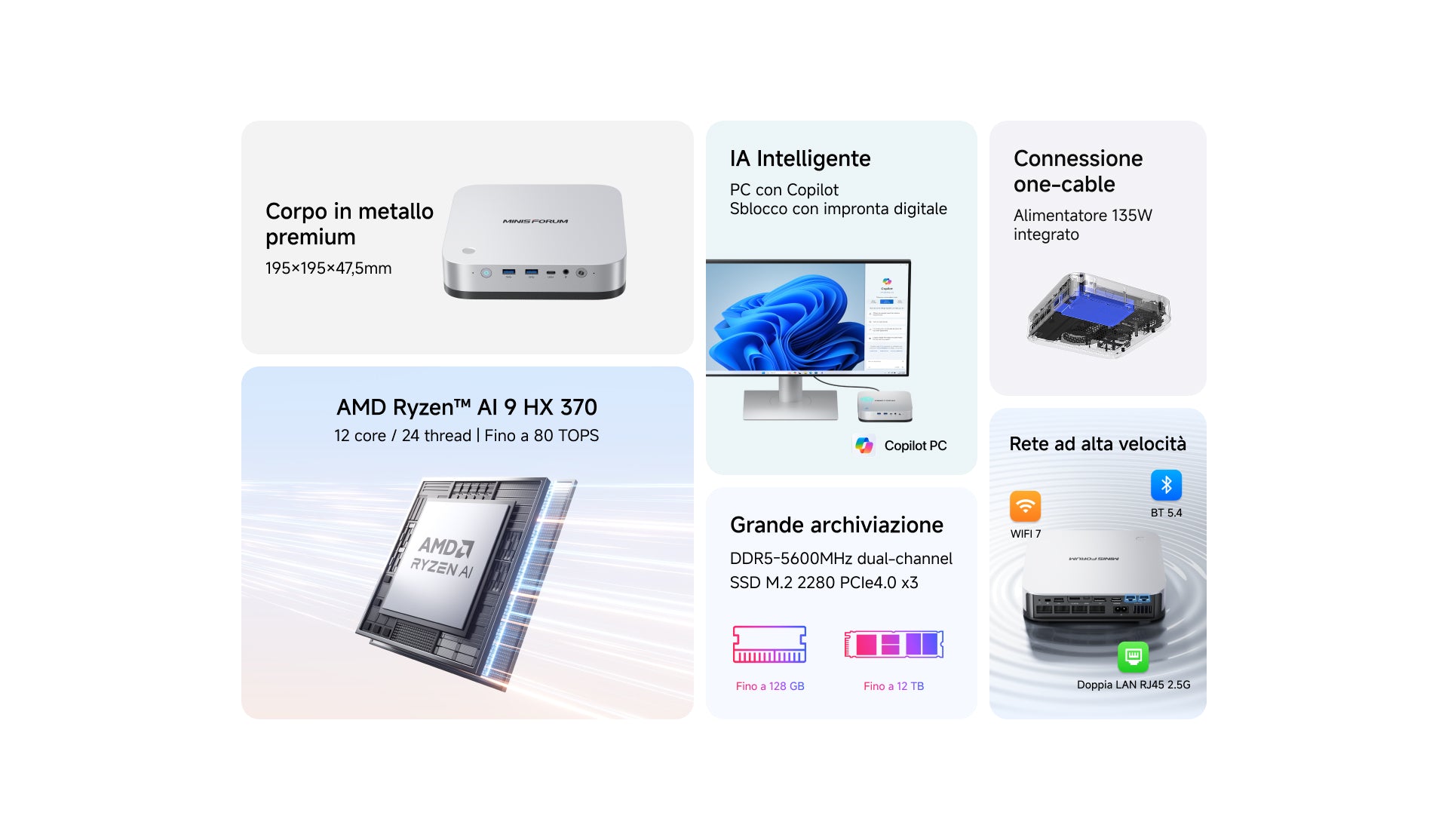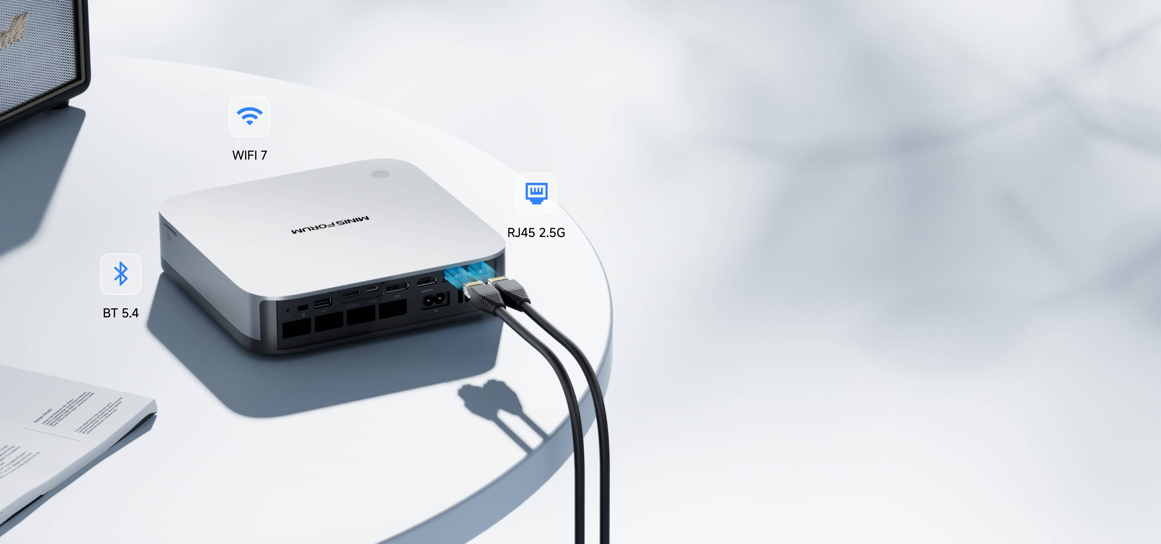 Ciò elimina i problemi di stabilità e i rumori associati ai collegamenti con alimentatori esterni. Con un solo cavo di alimentazione, non serve un adattatore esterno, mantenendo la scrivania libera da ingombri. In viaggio, basta portare con sé il cavo e il MINI PC per una portabilità facile e massima mobilità.
