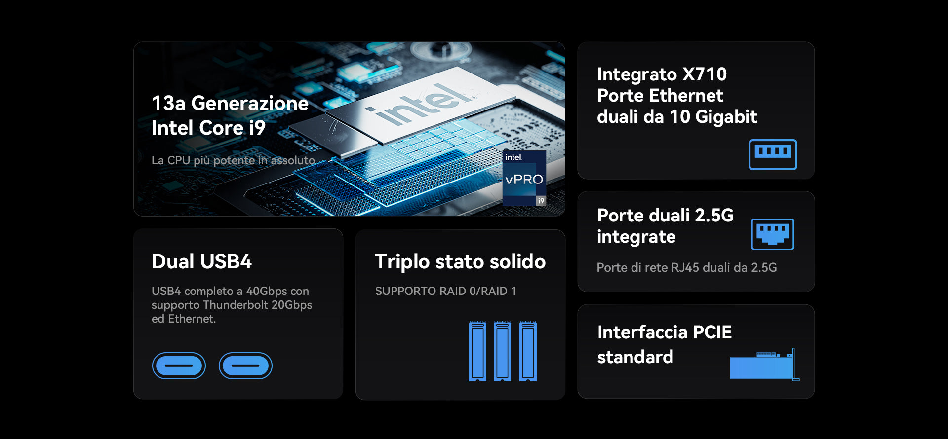 1* slot PCIe 4.0 x16 (mezza altezza, singolo slot, supporta velocità fino a PCIe 4.0 x8)