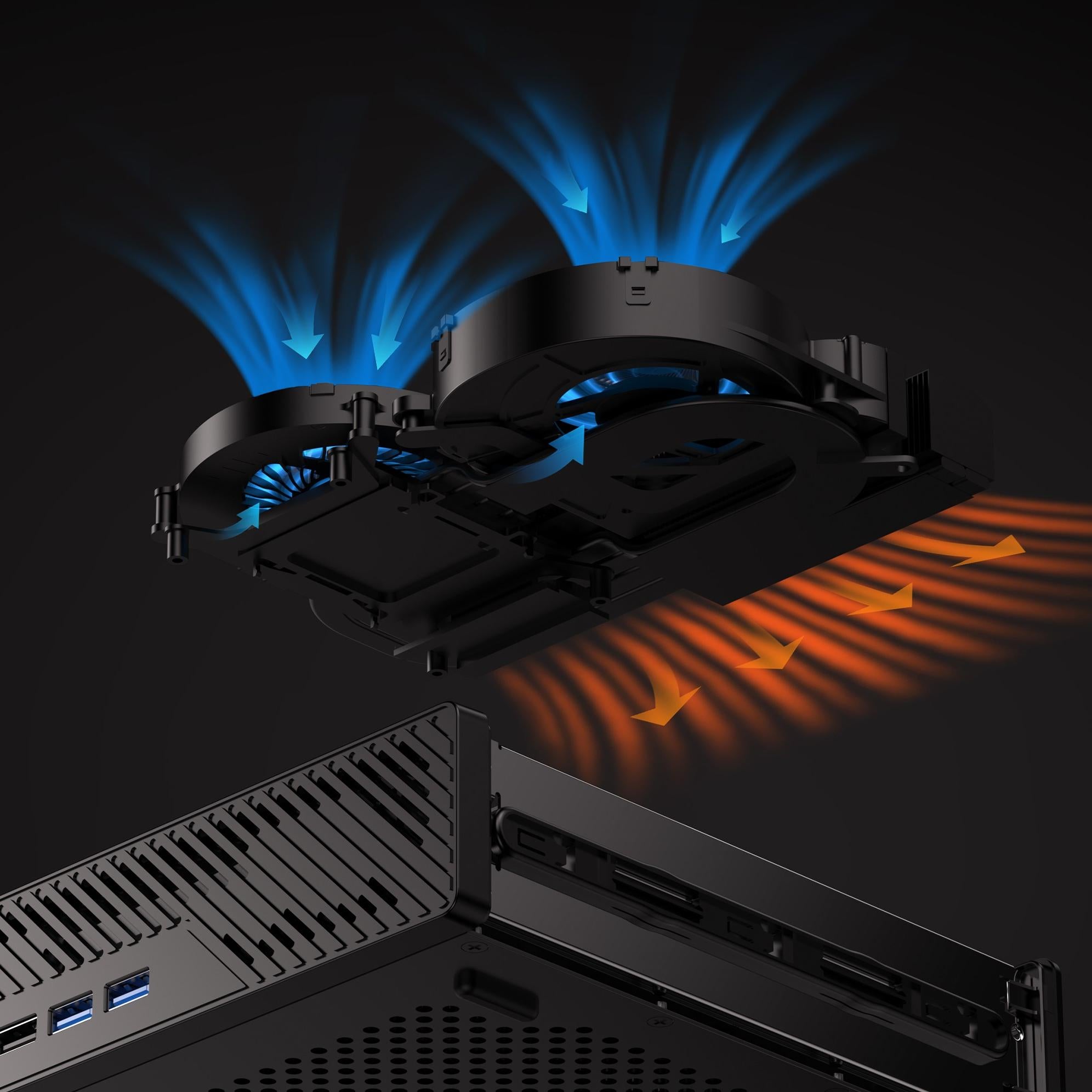 Adotta un sistema a doppia ventola con 4 heat pipe, riducendo efficacemente la temperatura del dispositivo e garantendo prestazioni stabili. Con livelli di rumore che possono raggiungere soli 37 dB, offre un ambiente di lavoro più silenzioso.