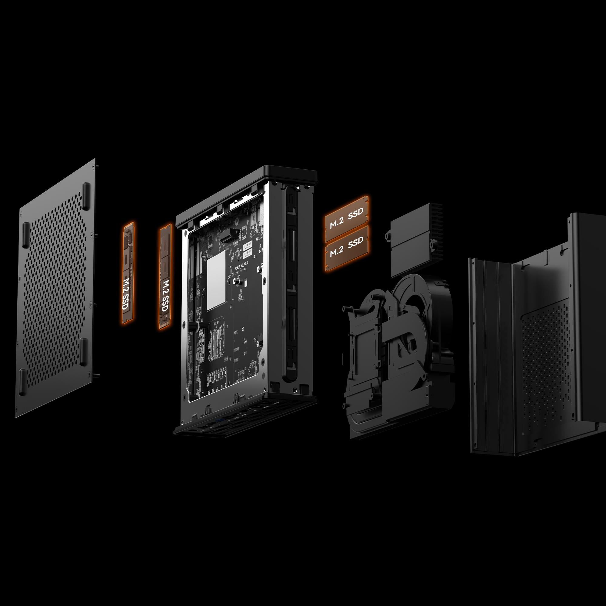 Il modello MS-A1 dispone di 4 slot M.2 PCIe 4.0 NVMe SSD con velocità di trasferimento fino a 7000 MB/s. I suoi numerosi slot di espansione consentono una capacità massima totale di 16 TB, soddisfacendo le esigenze di archiviazione avanzata di professionisti creativi e audiovisivi.