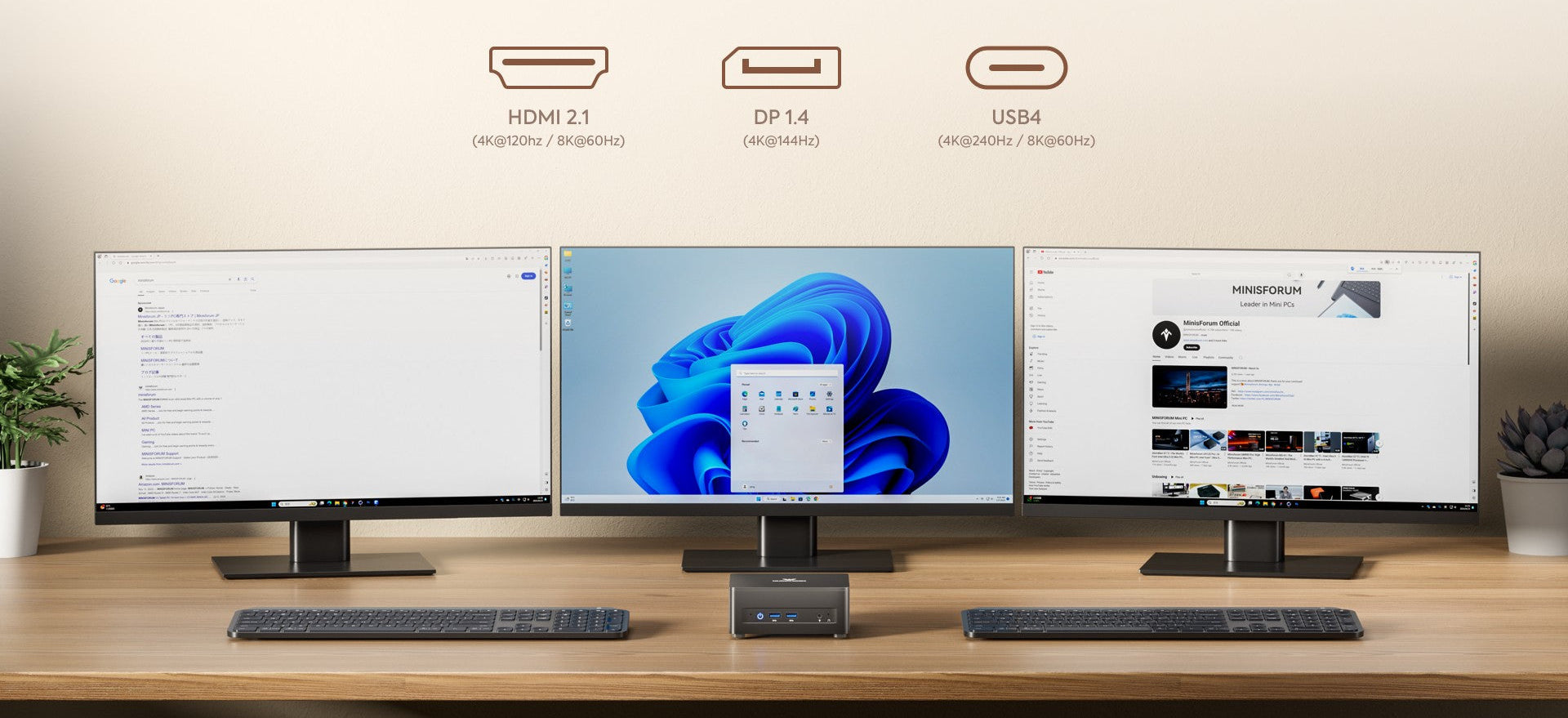 L'UM760 Slim rivoluziona il multitasking grazie alle sue porte USB4 ad alta velocità, HDMI 2.1 e DisplayPort 1.4. Collega senza sforzo fino a tre monitor 4K per potenziare il tuo flusso di lavoro e aumentare la produttività.
