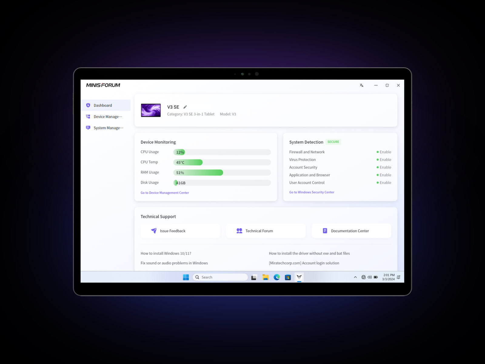 Minisforum V3 SE 3-in-1 Tablet con tastiera magnetica