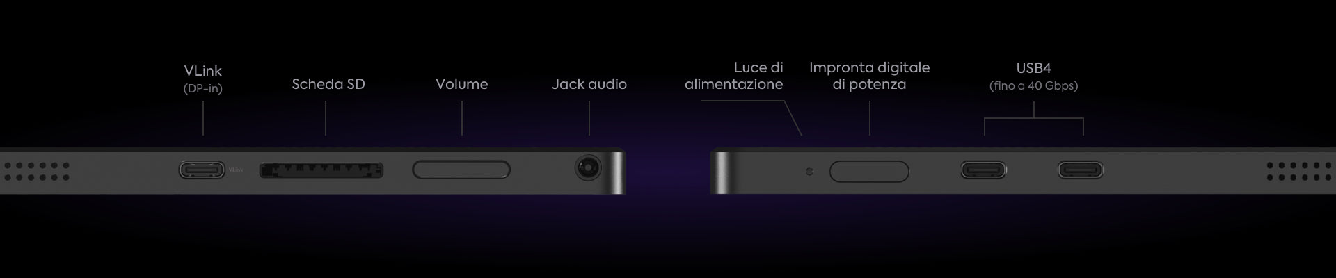 Tipo-C: 2x USB4, funzione completa; 1x USB-C, VLink (DP-in)